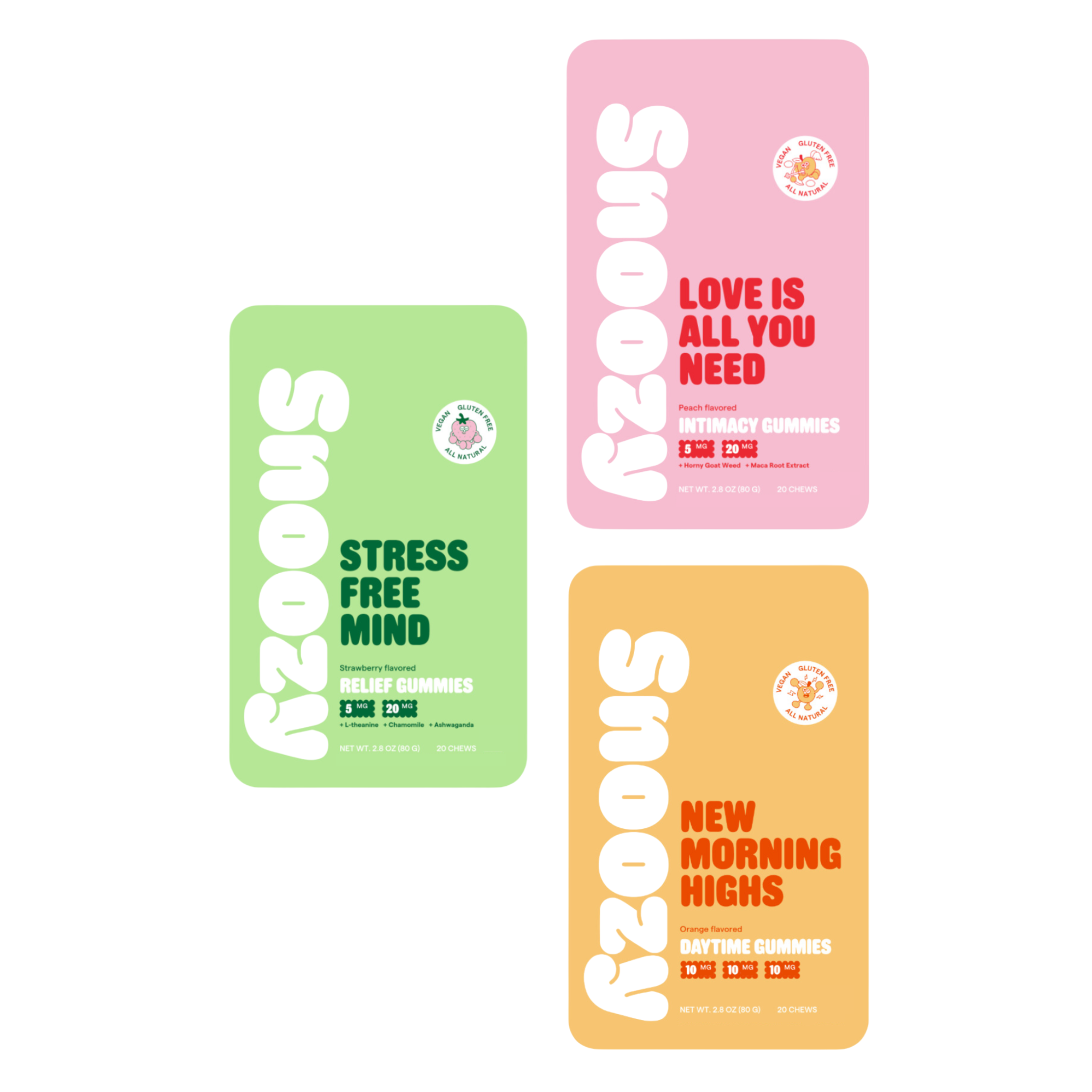 Bite into an oh-so-tasty world of gummies carefully crafted to fit your life. Whether you want to slow down or get up and go, Snoozy has you covered. Because that’s what friends are for.